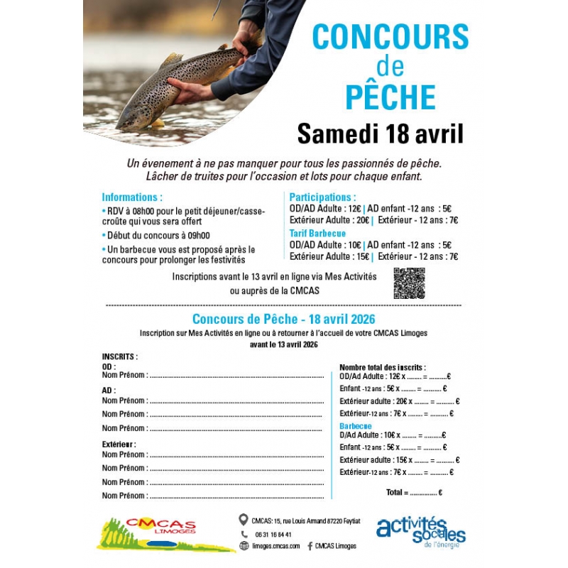 Pour toutes informations complémentaires, contactez la CMCAS organisatrice, CMCAS LIMOGES, au 06 31 16 64 41.