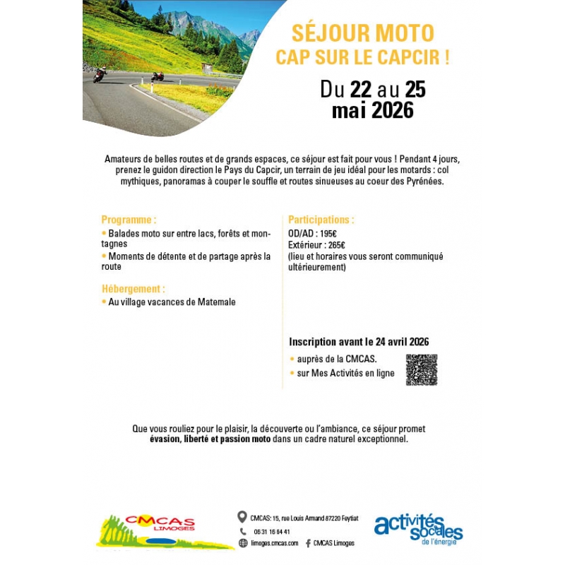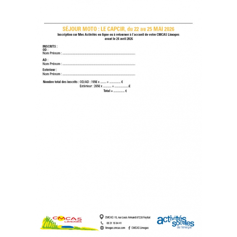 Pour toutes informations complémentaires, contactez la CMCAS organisatrice, CMCAS LIMOGES, au 06 31 16 64 41.